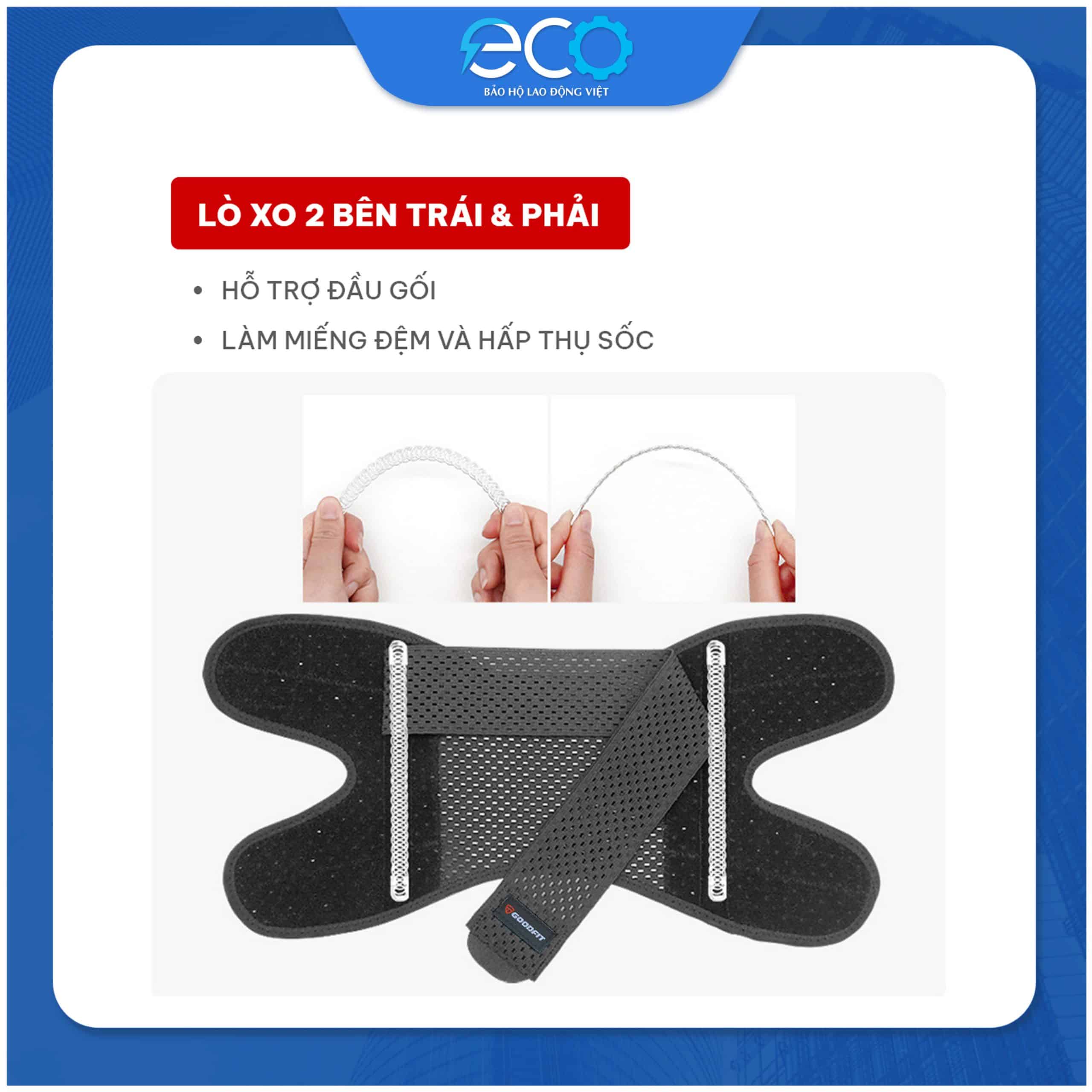 - Miếng đệm đầu gối chống trượt với 3 tính năng nổi bật: lò xo trợ lực, dây đai nén điều chỉnh, vải đục lỗ thoáng khí