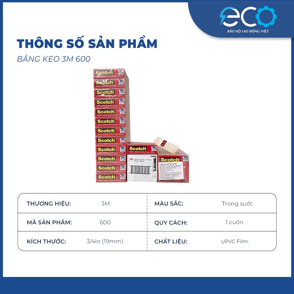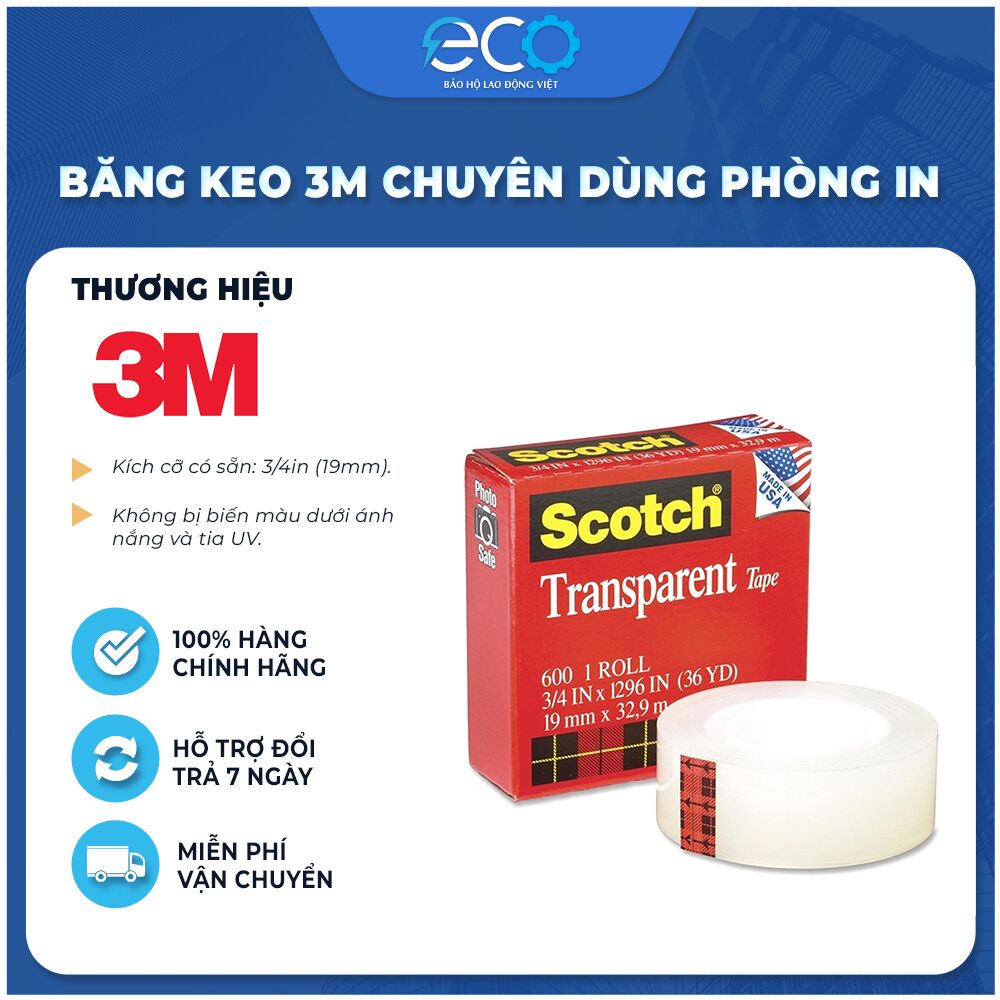 Băng keo 3M 600 Scotch Transparent Tape, 19mm 36Y.