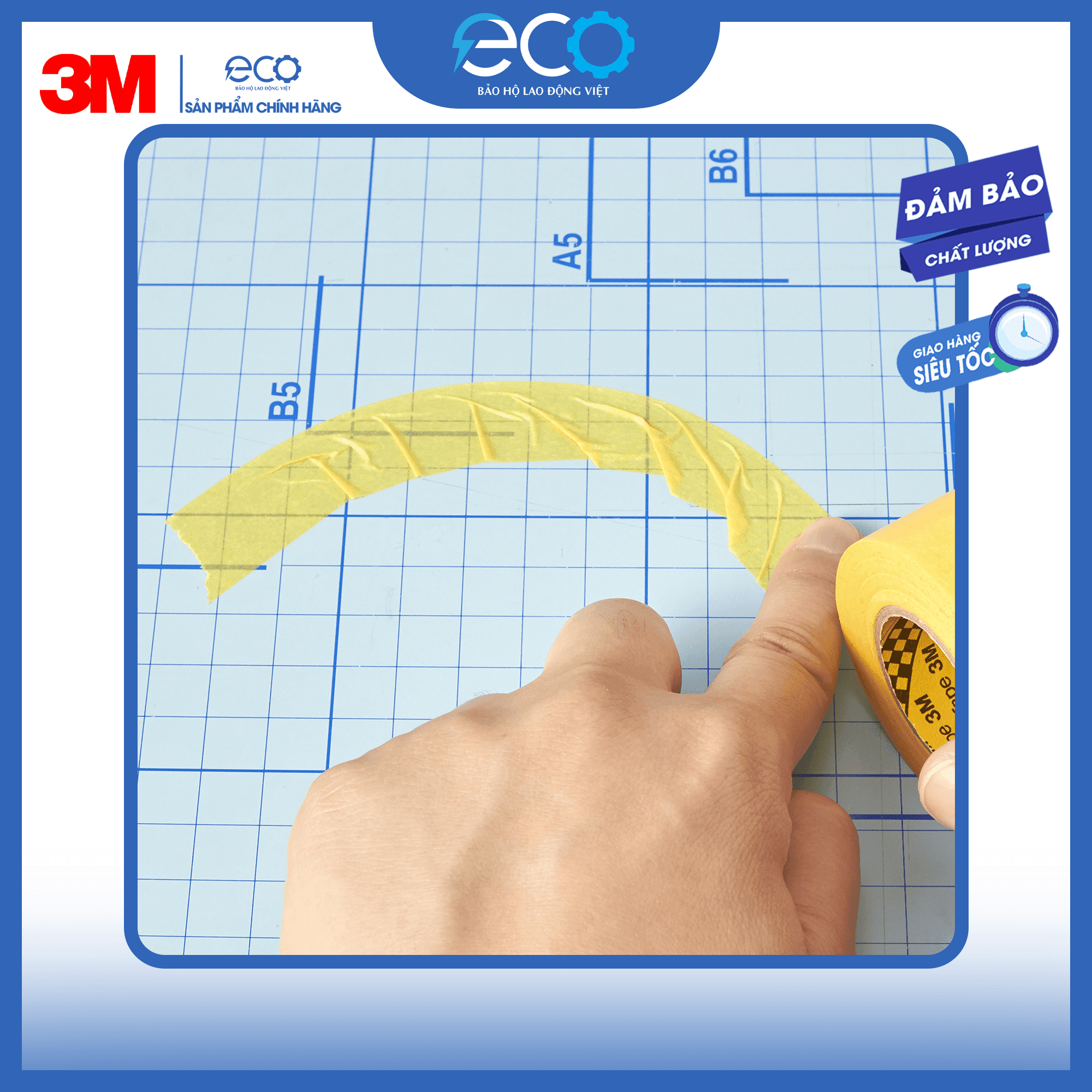 Băng keo giấy 3M 243J che chắn sơn màu vàng là 1 loại băng keo che sơn với độ siêu mỏng, chịu nhiệt và hoàn toàn không để lại keo trên bề mặt sản phẩm – sản xuất tại Japan bằng loại giấy washi nổi tiếng ,đỉnh cao của công nghệ sản xuất Băng keo hàng đầu thế giới