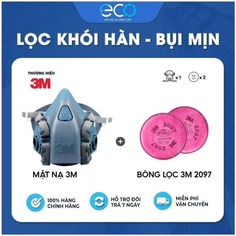 MẶT NẠ PHÒNG ĐỘC 3M 7501- 7502 – MẶT NẠ CHỐNG BỤI – CHỐNG HƠI ĐỘC -KHÍ HÀN CẮT ĐÚC KIM LOẠI (3M 7502 + 3M 2097)