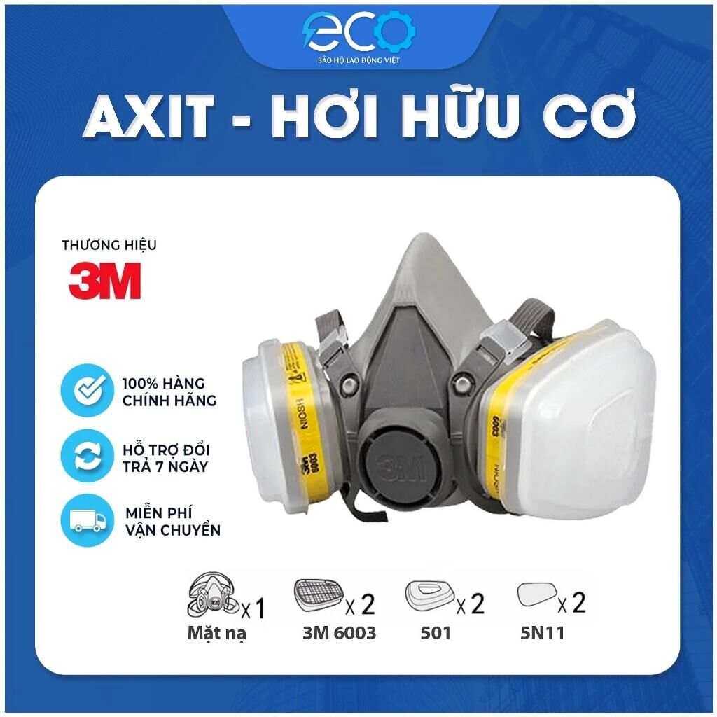 Bộ mặt nạ phòng độc 3M 6100/6200 kết hợp phin lọc 3M 6003 và tấm lọc bụi 3M 5N11 cùng nắp giữ 3M 501 là giải pháp bảo hộ hô hấp toàn diện, giúp ngăn chặn hiệu quả hơi hóa chất, hơi hữu cơ, bụi mịn, sơn, dung môi và khí độc nhẹ trong môi trường làm việc.