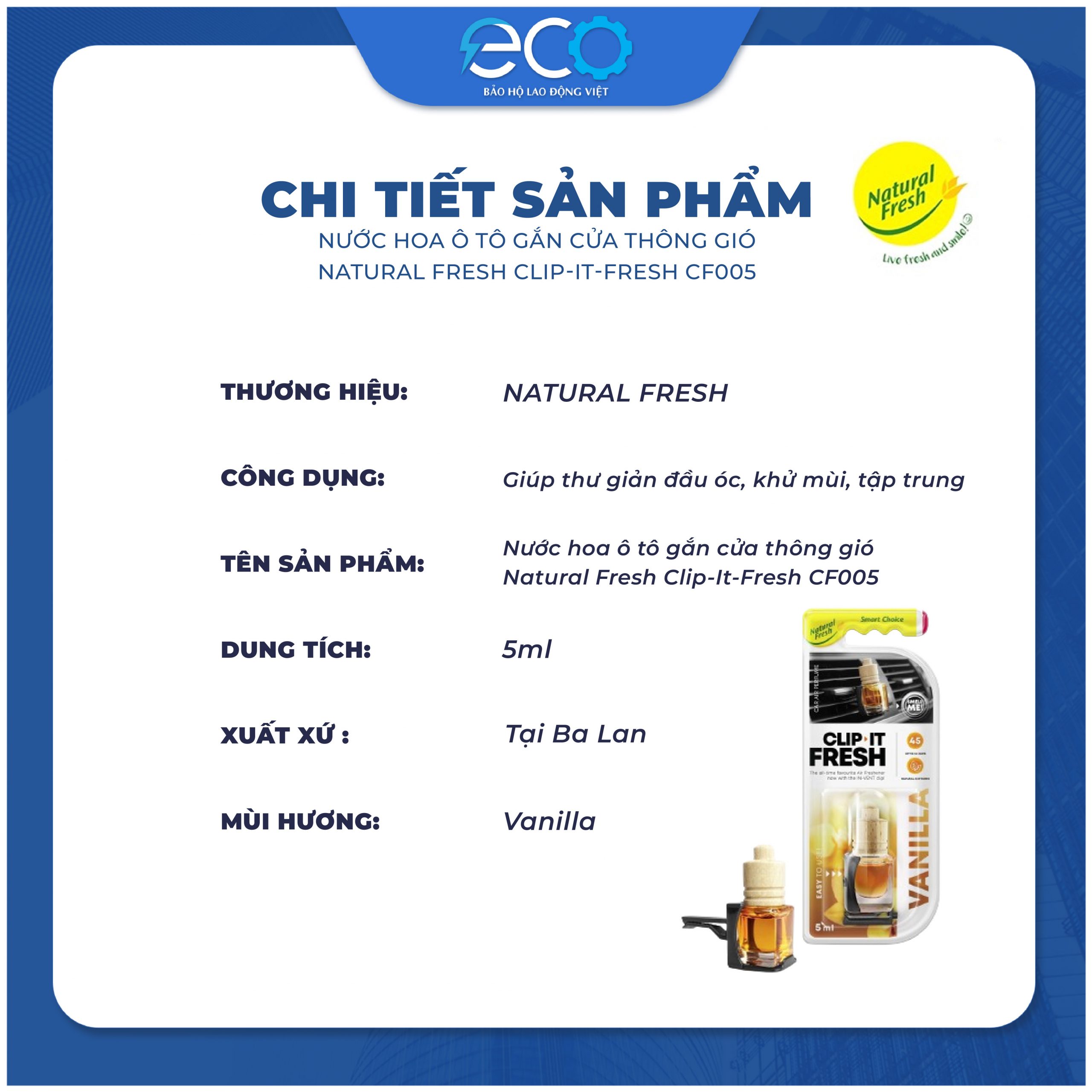 Thông tin Dầu thơm ô tô gắn cửa thông gió Natural Fresh Clip It Fresh – Hương Valina (Valina) 5ml :