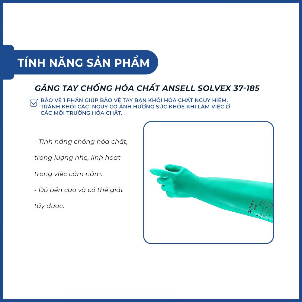 - Găng tay Ansell 37-185 có độ bền cao và có thể giặt tẩy được.