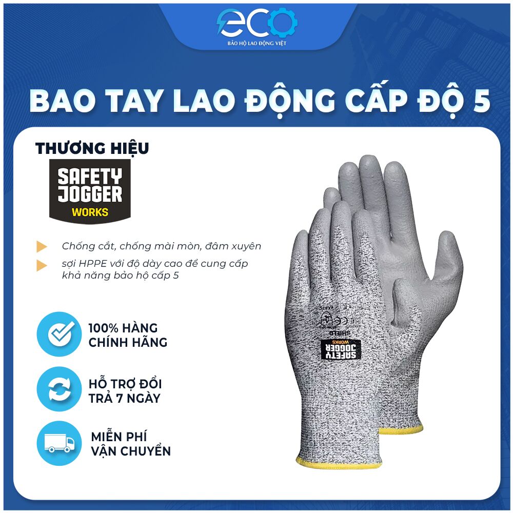 Găng tay chống cắt Jogger Shield liền mạch của Safety Jogger đảm bảo sự khéo léo, an toàn, độ bám và độ tin cậy rất lớn. Chúng được thiết kế để cung cấp sức mạnh tối đa trong điều kiện làm việc nặng. Bên cạnh khả năng chống cắt tối đa (cấp C), những găng tay này mang lại sự thoải mái và khéo léo tuyệt vời. Giải pháp lý tưởng cho các hoạt động công việc có nguy cơ bị cắt giảm. Mức kháng cắt cao nhất với bảo vệ cổ tay hoàn toàn.