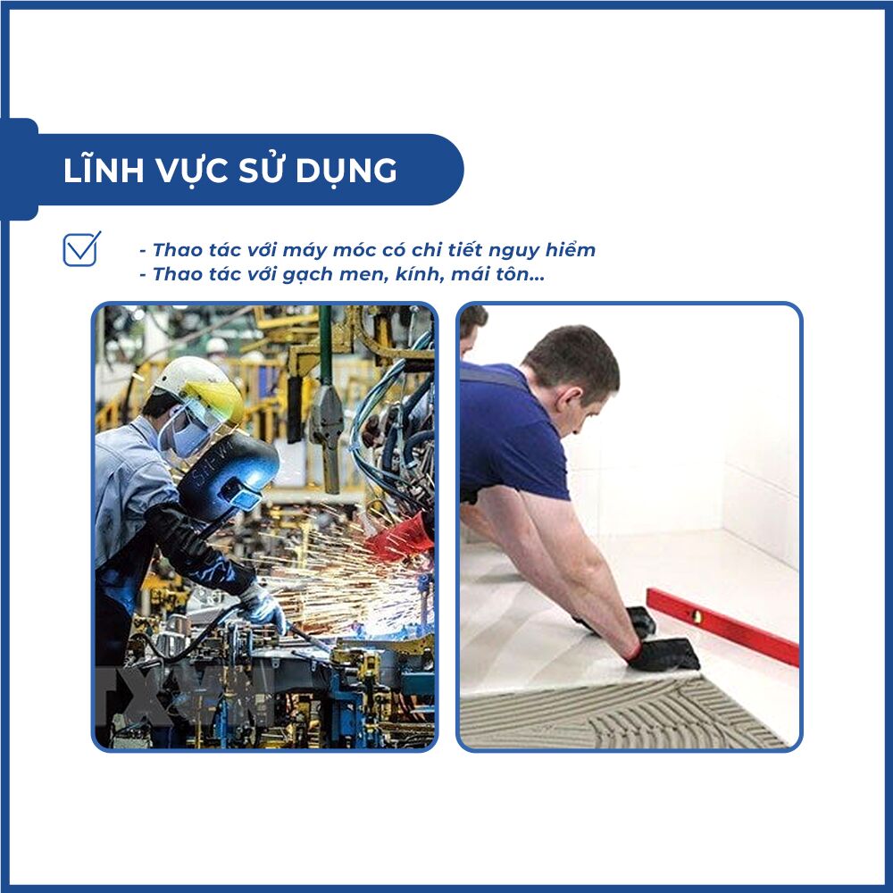 - Găng tay sợi giúp bảo vệ đôi tay khi tiếp xúc vật sắc nhọn.