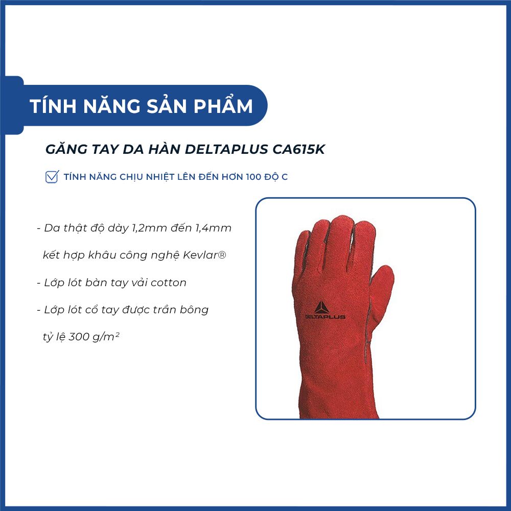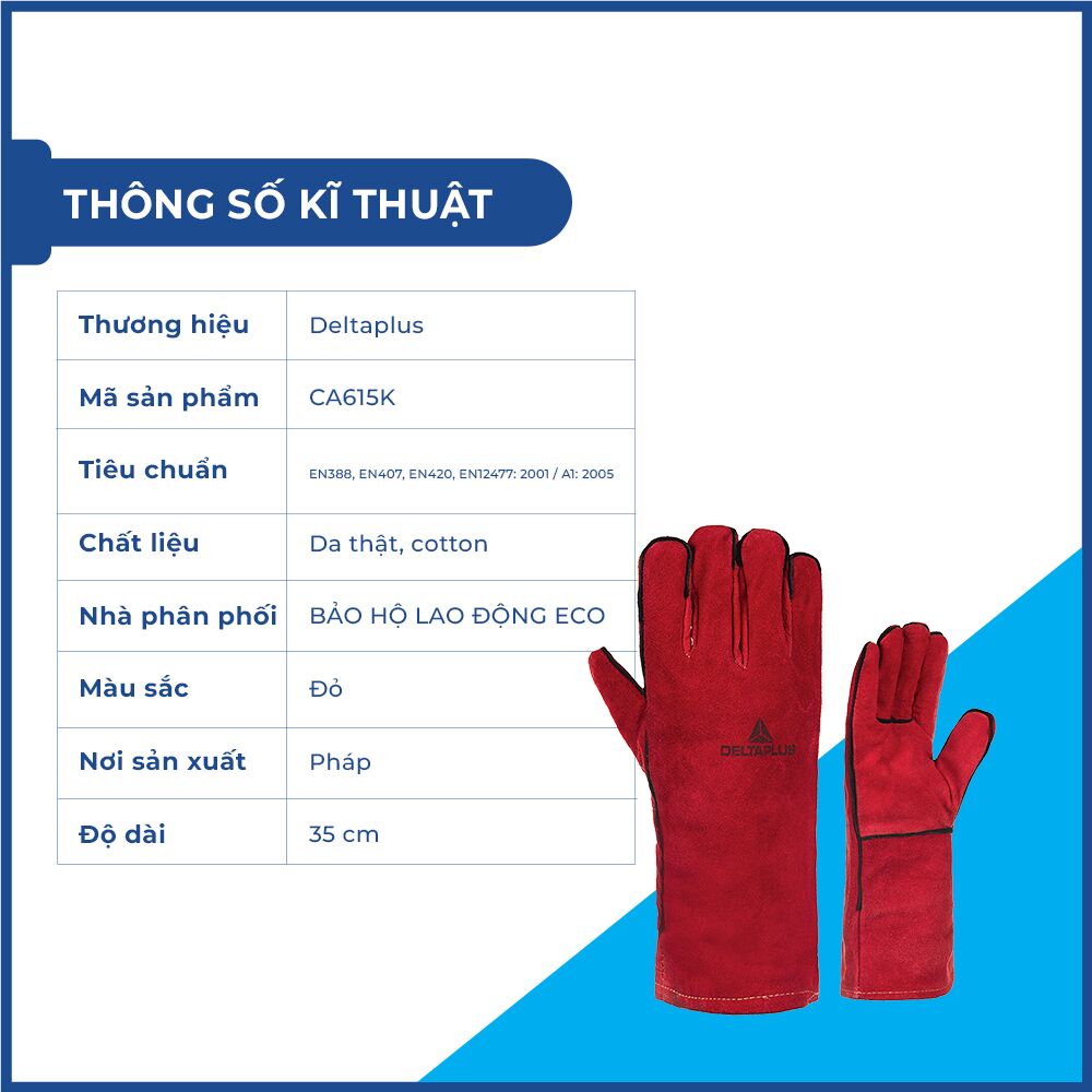 Thông số kỷ thuật của Găng tay da hàn Deltaplus CA615K.