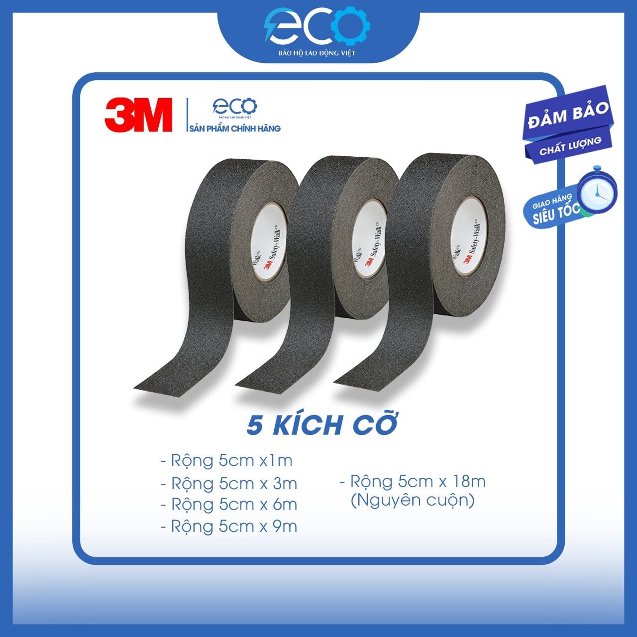 - Kích thước: 5cm x 1m, 5cm x 3m, 5cm x 9m, 5cm x 18m ( cuộn nguyên dài 18m)