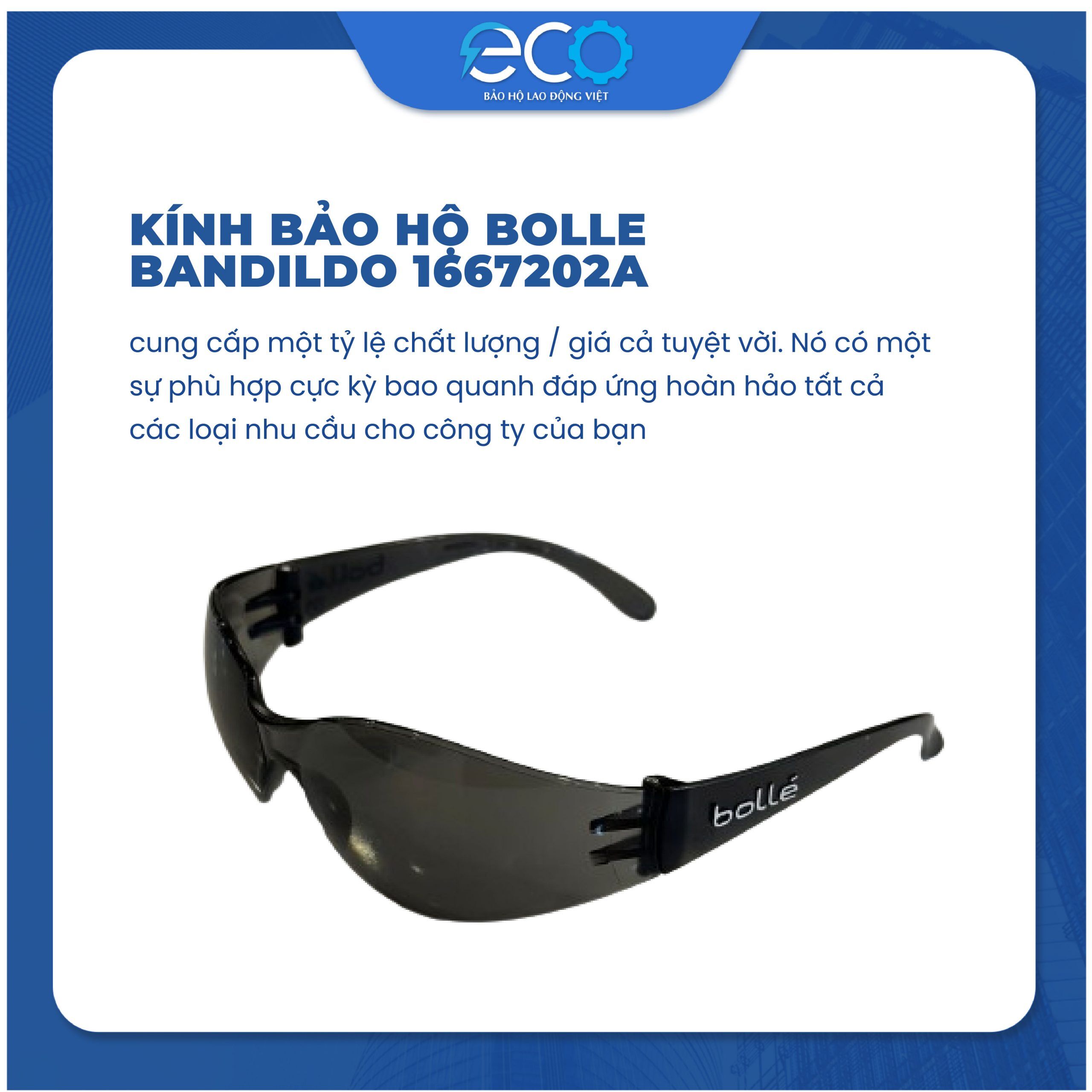 - Kính bảo hộ chống hoá chất chống tia UV Bolle BANDIDO 1667202A chính hãng Pháp là dòng kính siêu nhẹ không chứa kim loại và phong cách của Bollé Safety® mang đến cho người đeo sự thoải mái và tầm nhìn rộng