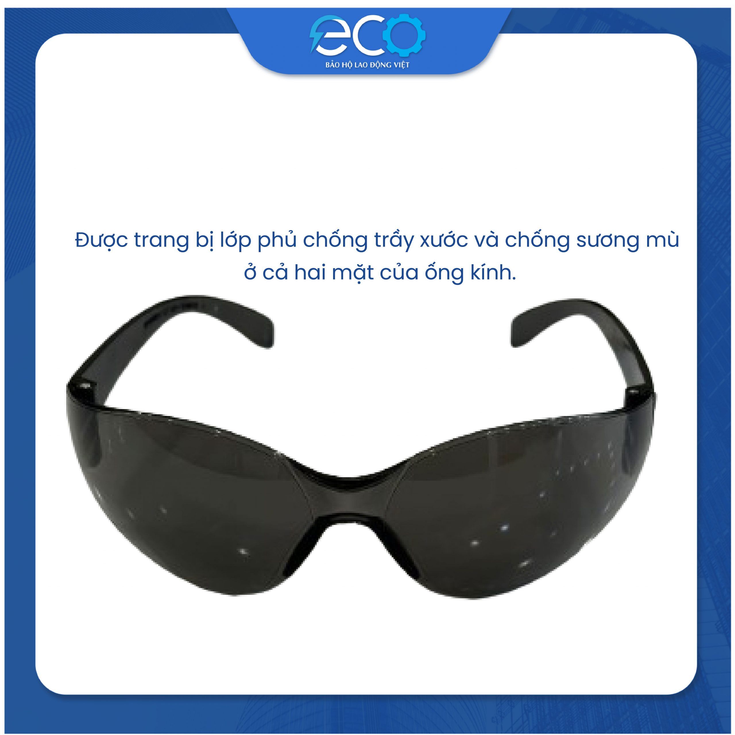 - Khung kính được thiết kế màu đen và trong kính màu khói. Tròng kính có độ dày 2mm, có lớp phủ chống trầy xước và chống sương mù ở cả mặt trong và mặt ngoài
