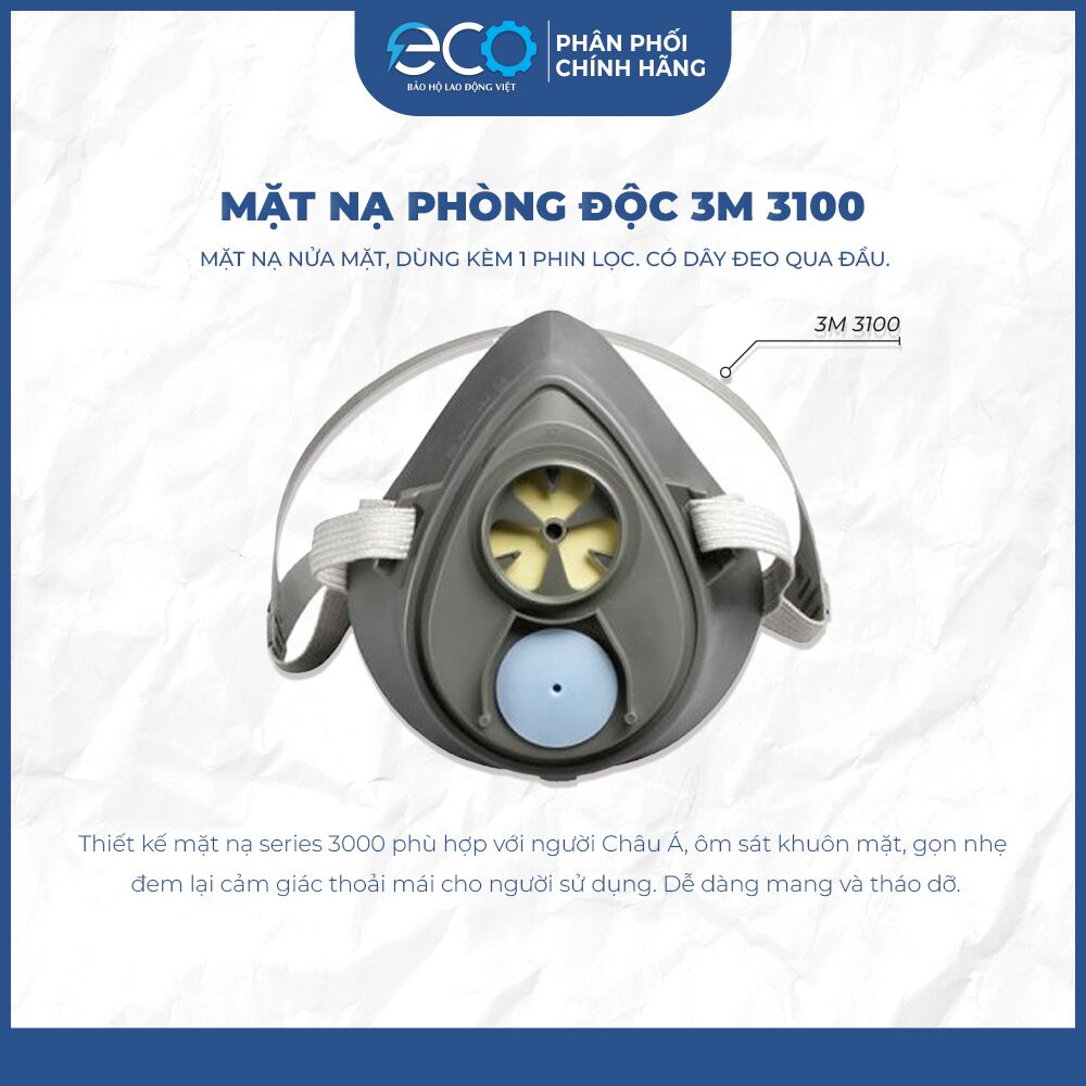 Mặt nạ chống độc 3M 3100 là dòng sản phẩm bảo hộ lao động cao cấp. Mặt nạ nửa mặt 3100 đạt tiêu chuẩn NIOSH. Chúng được thiết kế để sử dụng trong môi trường độc hại chống lại các mối nguy dạng bụi, hơi và khí.