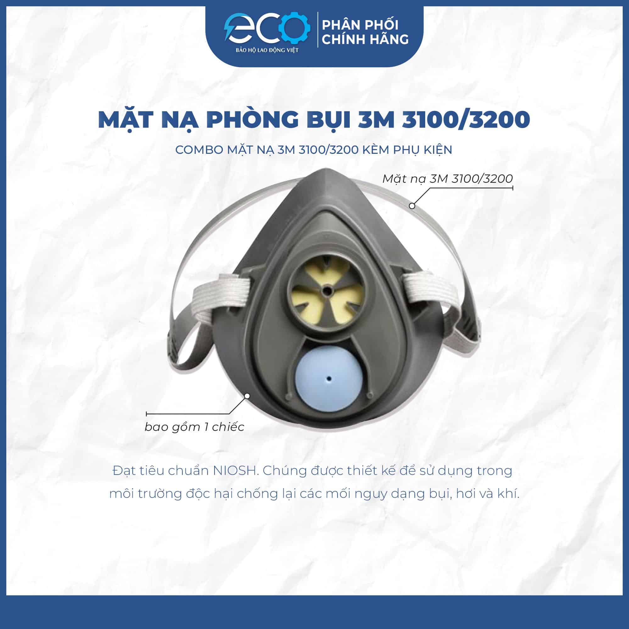 Trọn bộ mặt nạ chống bụi 3M 3100/ 3200 chống bụi siêu mịn gồm: