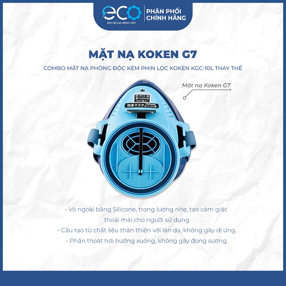 Mặt Nạ Phòng Độc Koken G7 Kèm Phin Lọc Koken KGC-10L là sản phẩm chính hãng từ Koken Nhật Bản, giúp bảo vệ hô hấp cho người lao động trong môi trường làm việc nhiều hóa chất độc hại như: phun sơn, phun thuốc trừ sâu, hóa chất,…