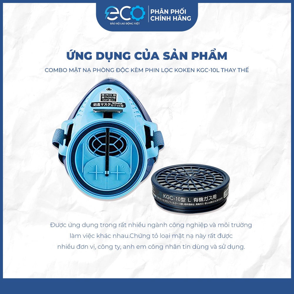 Mặt Nạ Phòng Độc Kèm Phin Lọc Koken KGC-10L được sử dụng trong các môi trường làm việc chứa nhiều chất độc hơi hữu cơ để bảo vệ đường hô hấp: