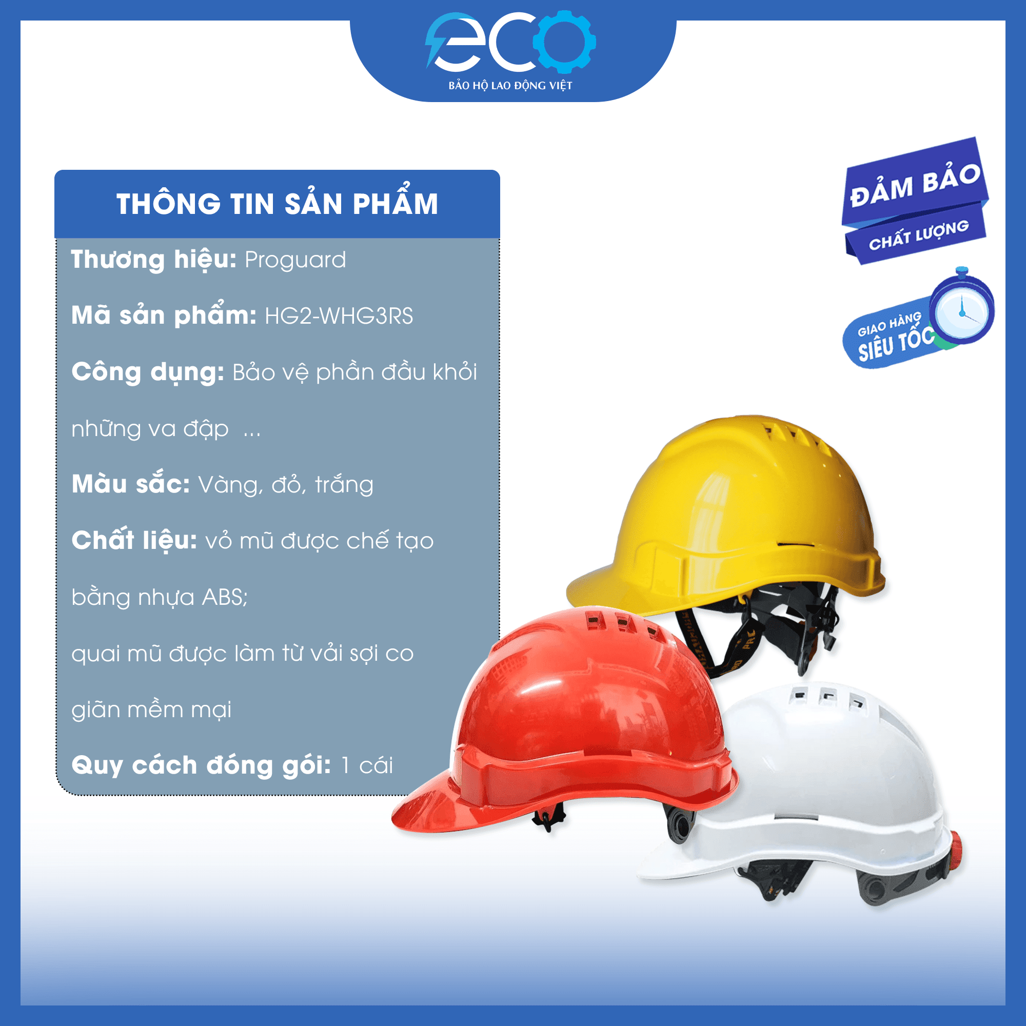 Mũ bảo hộ Proguard HG2-WHG3RS màu vàng được làm bằng ABS có độ bền cao và chịu được lực tác động mạnh. Chúng được ứng dụng trong nhiều ngành công nghiệp khác nhau như xây dựng, khai thác, lắp đặt,… để đảm bảo an toàn phần đầu cho các kỹ sự, công nhân.
