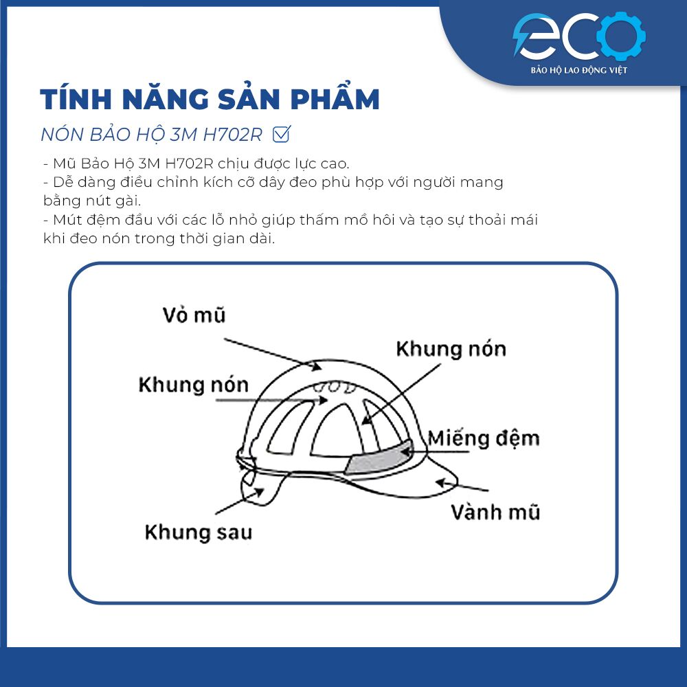 – Quy cách đóng gói: 1 nón 3M H701R + Dây quai nón 3M 1990.